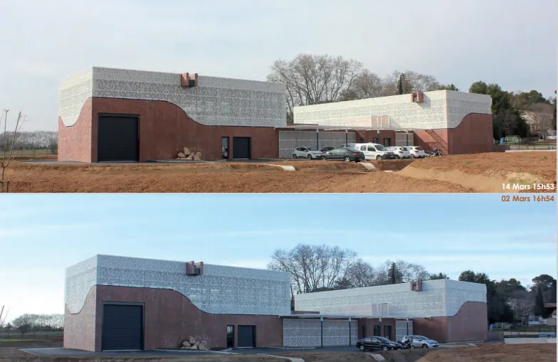 - Murs extérieurs : locaux accueil :béton brut matricé / isolation en polystyrène expansé (R=4.1 m². K/W)