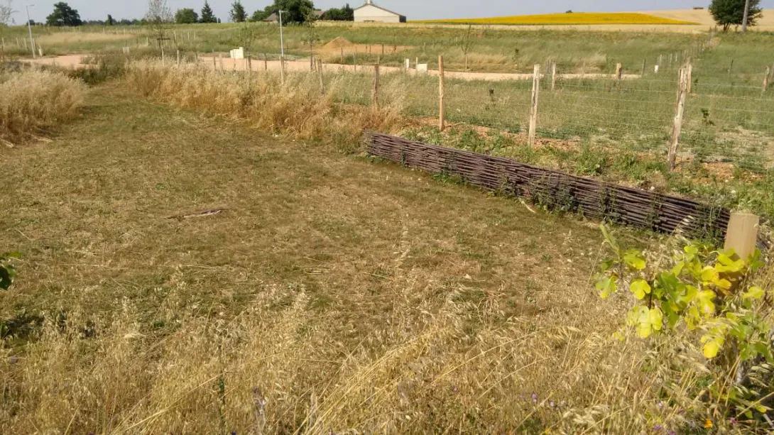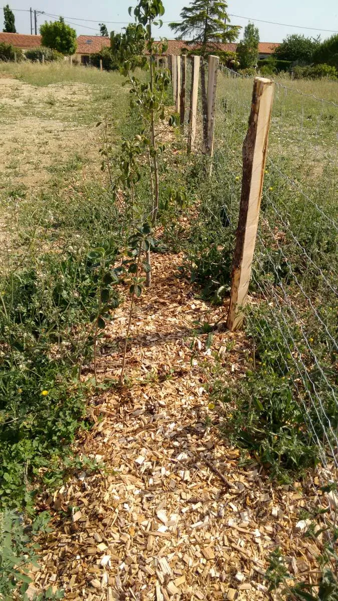L’utilisation de BRF (Bois Raméaux Fragmentés - broyat de rameaux verts et de petites branches fraîches) va permettre au sol de s’enrichir rapidement et naturellement tout en limitant l’évaporation. Aucune bâche plastique n’est enfouie dans le sol.