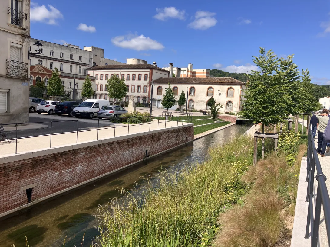 - Entre 2018 et 2022, la municipalité a souhaité détruire une portion considérable de la route sur le cours Rambaud, en préservant la route départementale. Le canal a été remis à jour, un espace végétalisé de promenade et de repos a été aménagé ainsi qu’une placette devant l’ancien hôpital. Cette opération a supprimé un nombre important de places de stationnement, a permis le retour de l’eau et de la nature dans ce quartier, mais a nécessité des travaux très conséquents et techniques.